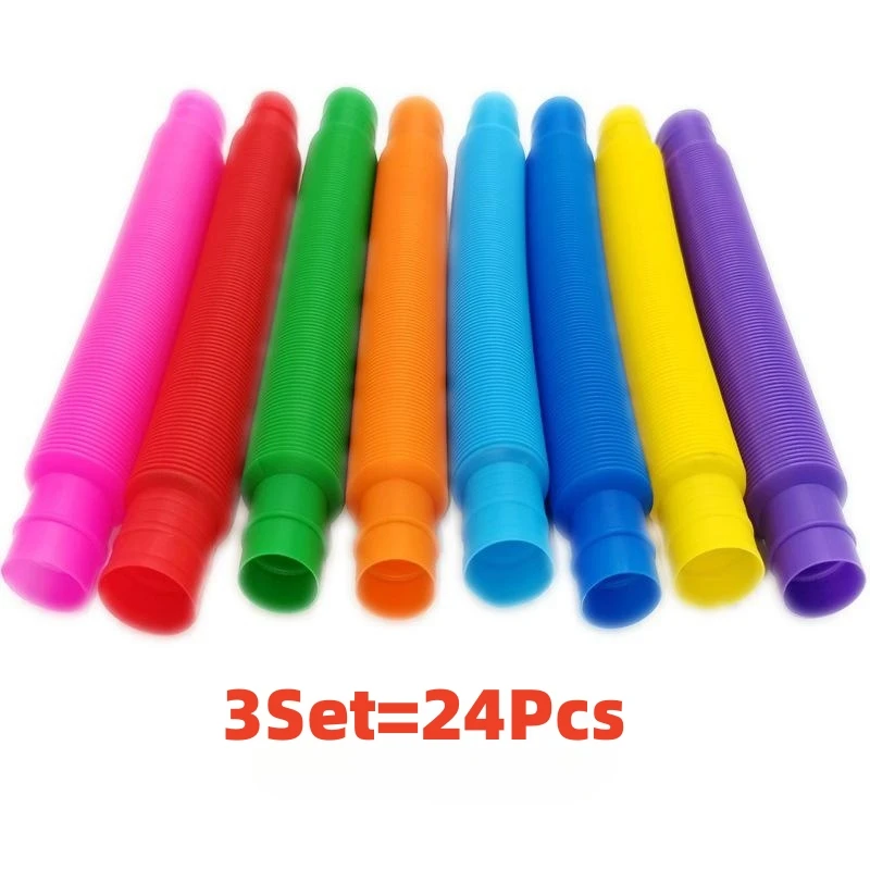 3Pcs/24Pcs Set Flexible Plastic Color Telescopic Tube Pop Tube Stretch Tube Bellows Children Adult Decompression Toys
